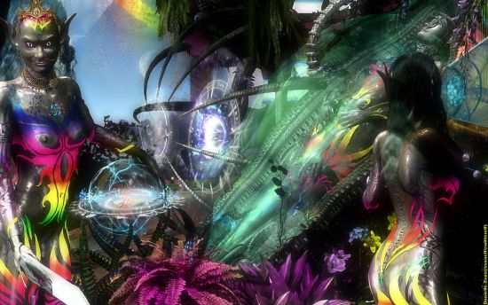 painting of elf extra terrestrial characters from the three