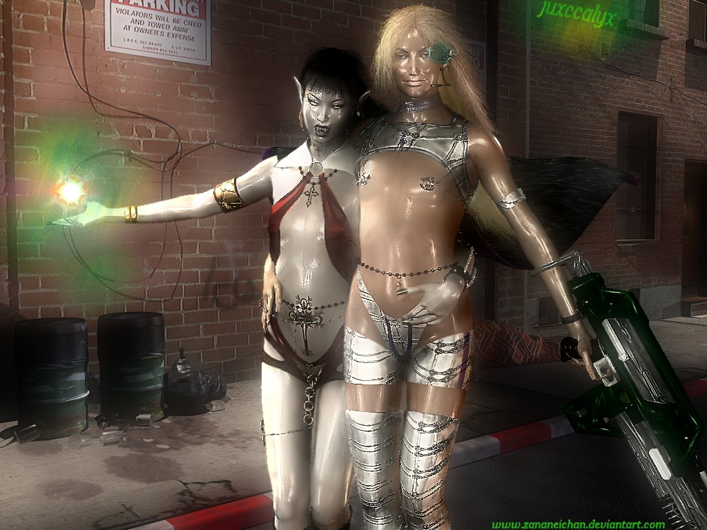 Gift art for a friend Juxccalyx, with androgynous characters.