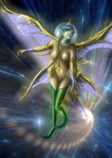 Fairy flying through warp space/wormhole