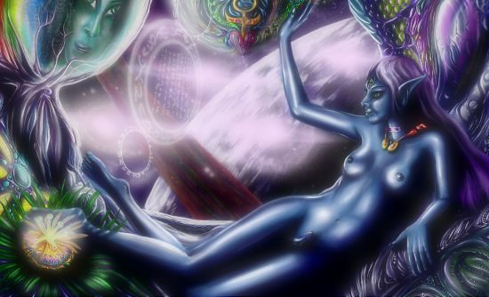 Star Flight, a zwitter (hermaphrodite) space elf in space