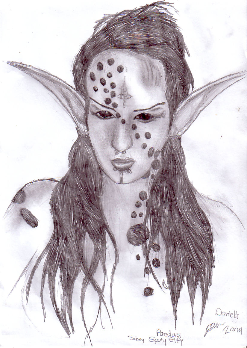 A sketch based on Pandora Naamah , her sinful spots... but this time I put some elf ears on her... I really like this one :-) http://www.myspace.com/pandoranaamah