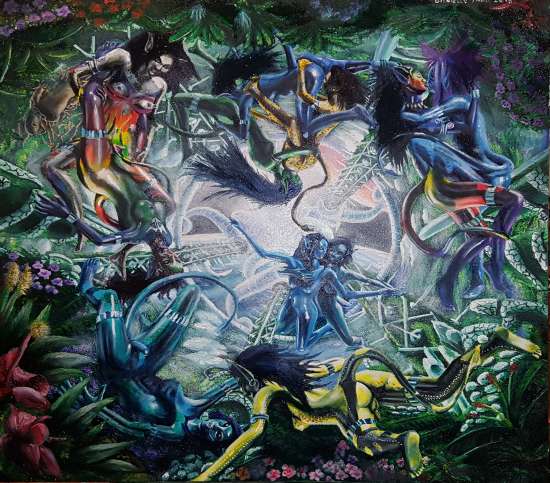 space elves having a sensual moment in the centre of their