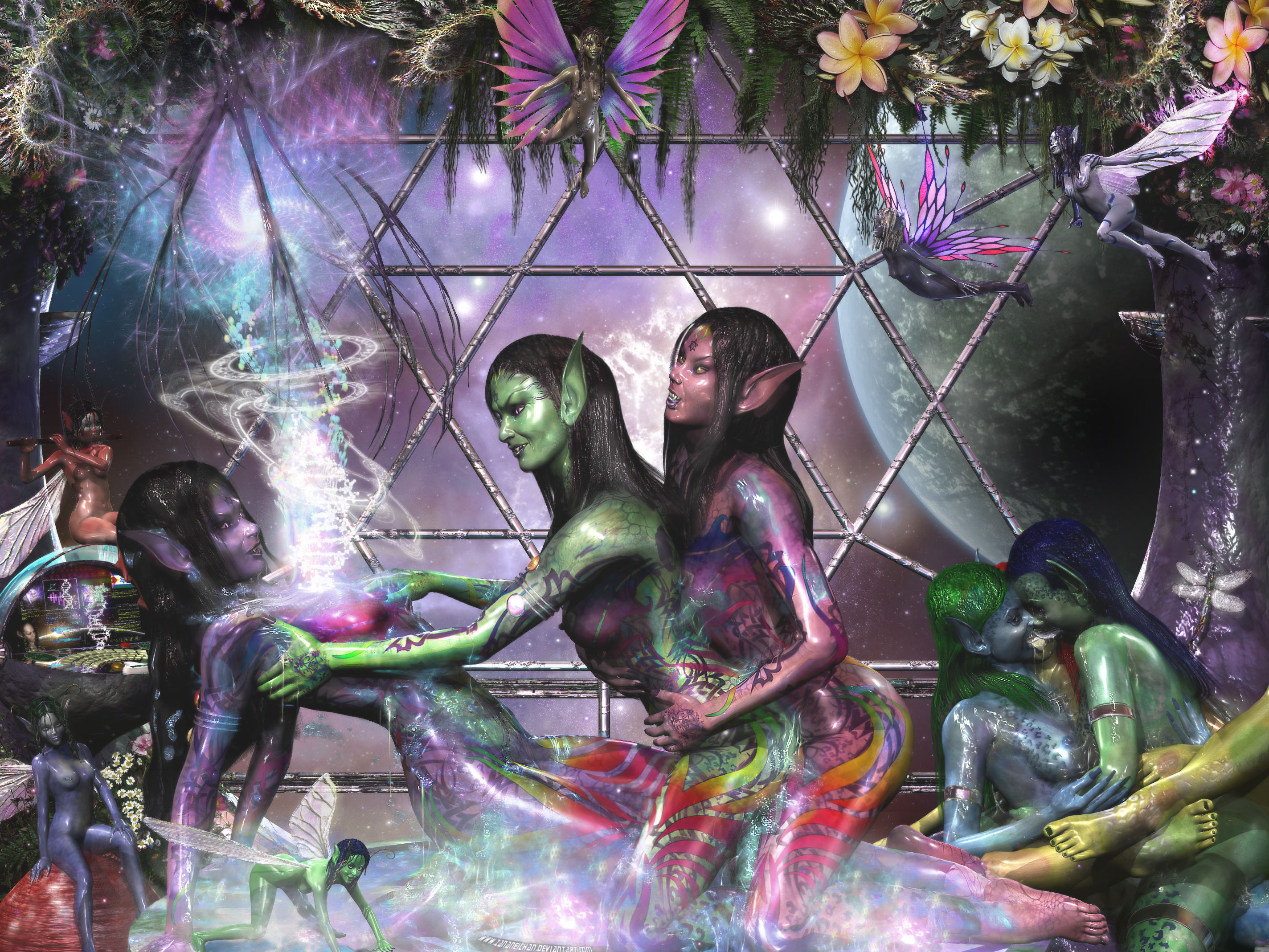 Shalom, from the pattern: Neverland pattern  , I Inverted it to create a Star Of David by having the one set of three triangular points point up and the other point down (also forming a megaton's cube, the result was astonishing, which showed up a set of X chromosomes [link] ..