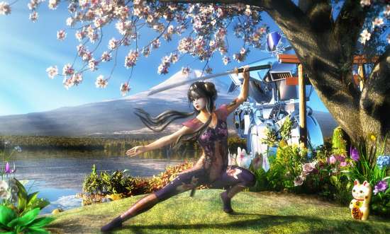 with her katana, before returning to pilot her mecha.