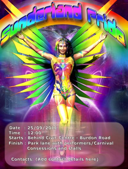 Sunderland Pride poster design for the Sunderland Pride 2011 with the completed title bits.