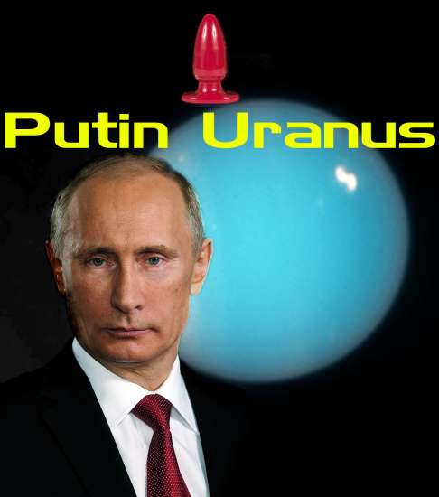 A funny play on words.. Putin Uranus , sounds like "put in your anus".